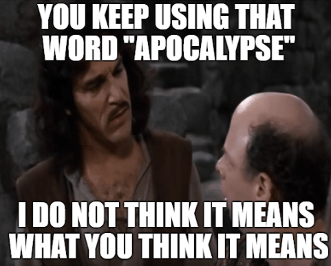 One of my recurring social media posts–especially on Twitter–is to chide (OK, mock) hyperbolic headlines about some issue or other being “apocalyptic.” Here are three examples, just from today: